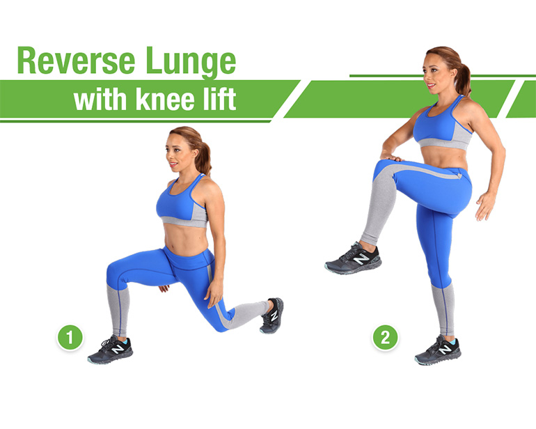 5. Reverse Lunge with knee lift