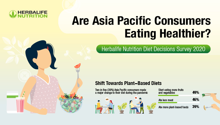 ASIA PACIFIC, December 11, 2020 – Premier global nutrition company, Herbalife Nutrition, today released findings from the 2020 Diet Decisions Survey, which revealed that Asia Pacific consumers are eating better and exercising more, with 58% believing that they will emerge healthier in the new normal. The survey, which polled 8,000 consumers in eight Asia Pacific markets, including Australia, Indonesia, Japan, Malaysia, Philippines, South Korea, Taiwan and Vietnam, also shed light into the motivations behind the consumers’ recent dietary and lifestyle changes, with the aim of inspiring more people to adopt better nutrition and lifestyle habits to improve their overall well-being now and into the future.