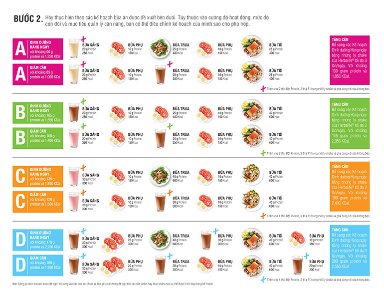 Bước 2: Kế Hoạch Bữa Ăn A, B, C Và D
