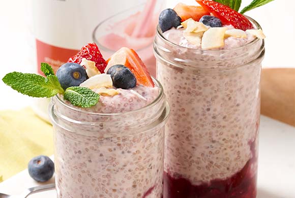 Chia seeds contain 34.4g fibre, 17.8g omega 3, 407mg potassium and 335mg magnesium per 100g of raw product. Combine them with your favourite Herbalife Nutrition Formula 1 shake